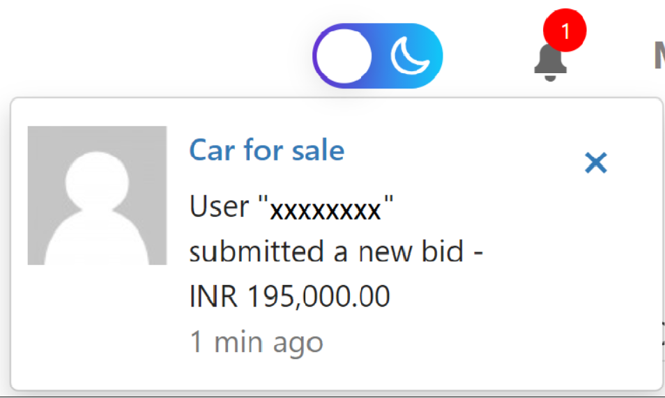 Ad owners will be notified after getting every new bid through notification icon and by email.