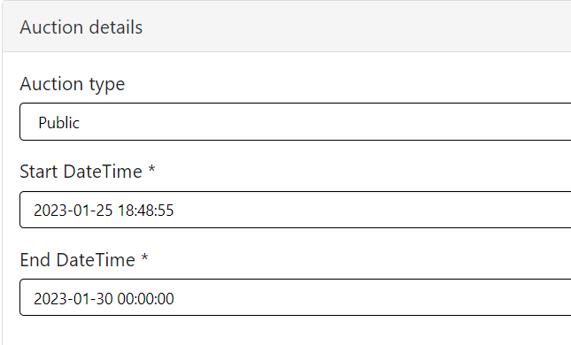 After selecting the auction option auction details section will appear in the form (below video URL section).